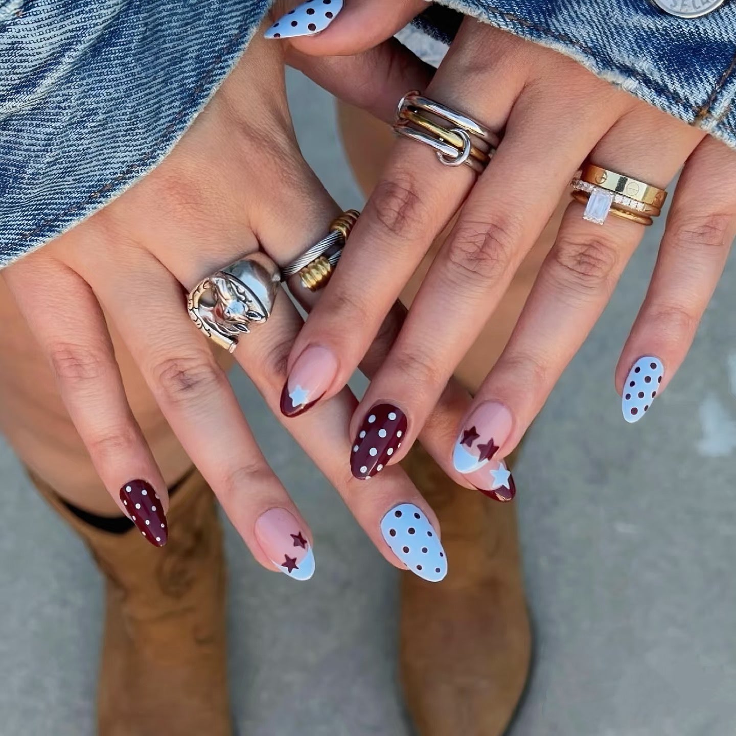 Tortoiseshell & Blue Gem Press-On Nails